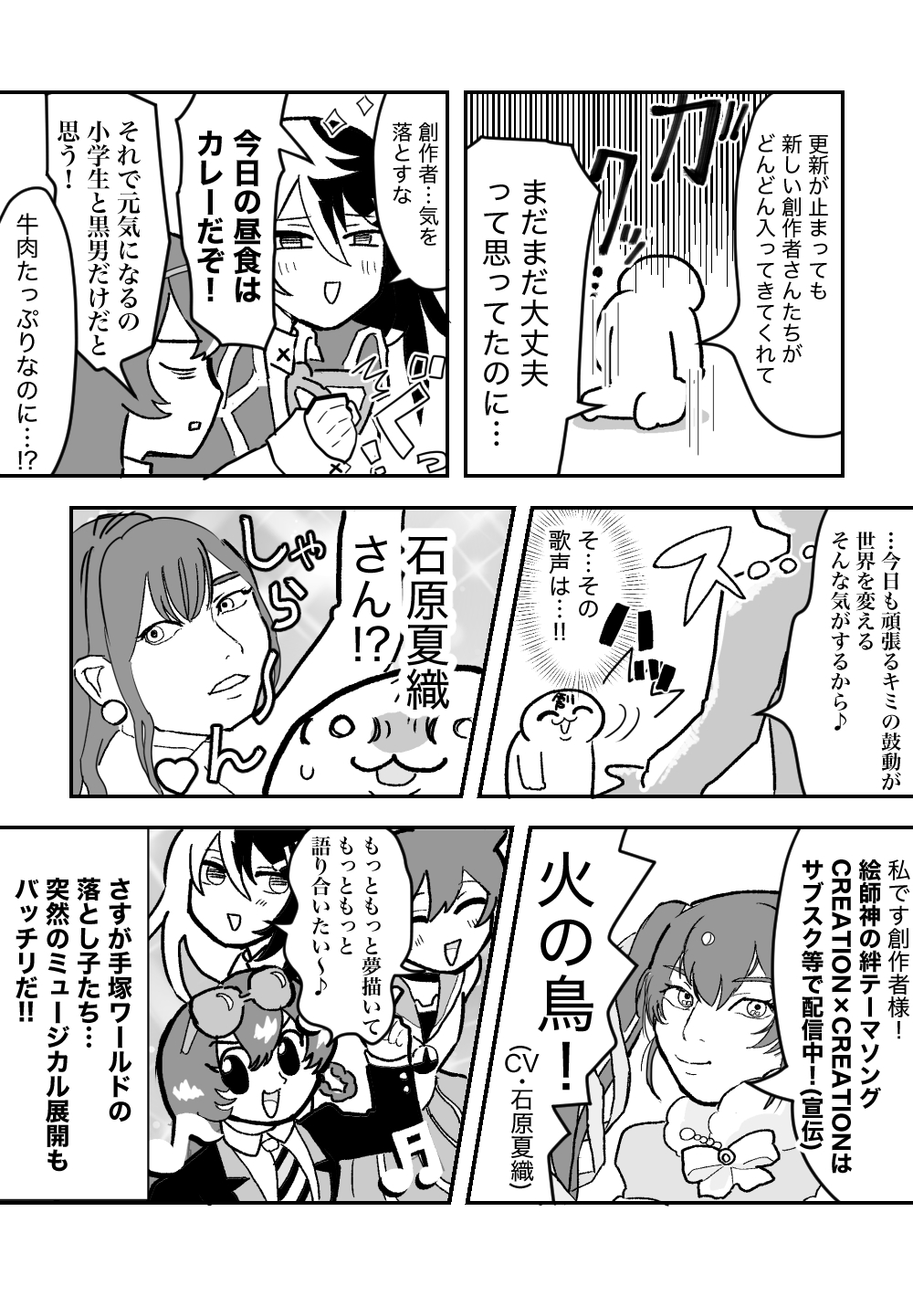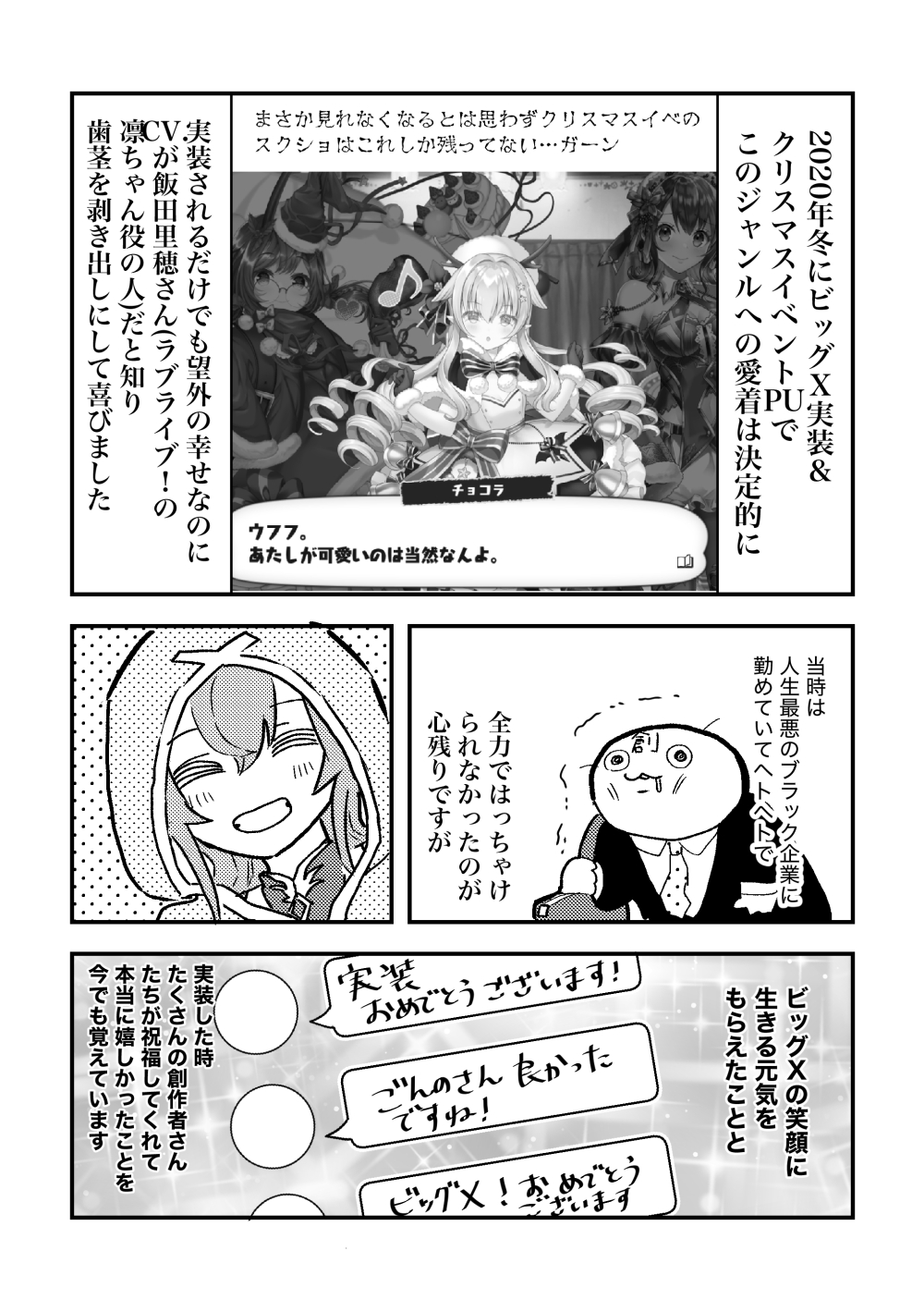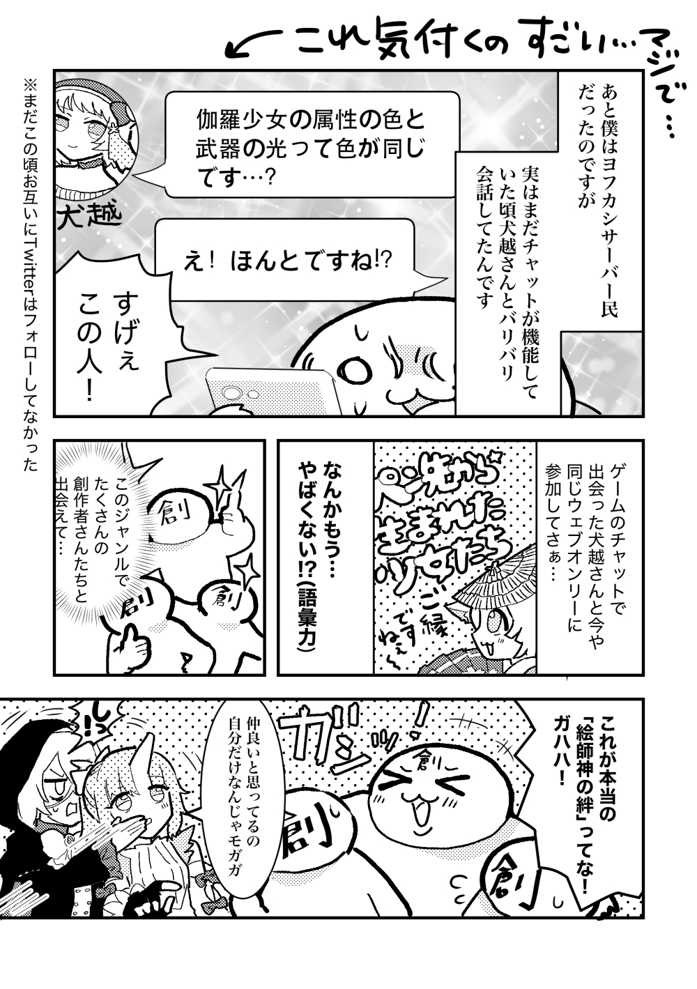 このゲームに対する気持ちを書き綴ろうとすると、ものすごく長くなるか妙に淡白になるかのどちらかになってしまって(極端!)上手く言えないのですが… 私はこの「絵師神の絆」という作品がなければここまで頑張ってマンガを描くことを続けなかったと思います。サ終してもやっぱり大好きです。